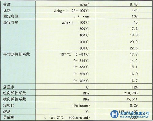 ·NAS 600鎳基合金物理特性