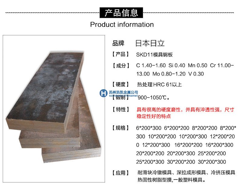 蘇州浩凱SKD11模具鋼物流配送運輸地區:北京,上海,重慶,天津,江蘇南京_徐州_蘇州_無錫_昆山_揚州,太倉_吳江_連云港_泰州_鹽城_鎮江_南通_常熟_常州_張家港,浙江溫州,杭州,寧波寧海_余姚_臺州黃巖_金華_紹興_嘉興,福建福州_廈門,廣西南寧_柳州,安徽合肥_安慶_蚌埠_巢湖_淮安_蕪湖_淮南_黃山_滁州_宣城,山東濟南_青島_日照_濱州_煙臺_威海_濟寧_聊城_臨沂_淄博,湖南長沙,重慶,河北石家莊,河南鄭州_洛陽_開封,湖北武漢,江西南昌,陜西西安,山西太原及云南昆明。歡迎各地模具廠商來電垂詢SKD11模具鋼價格和SKD11模具鋼熱處理機加工事宜。目前我司SKD11模具鋼現貨庫存表統計數量為12噸。
