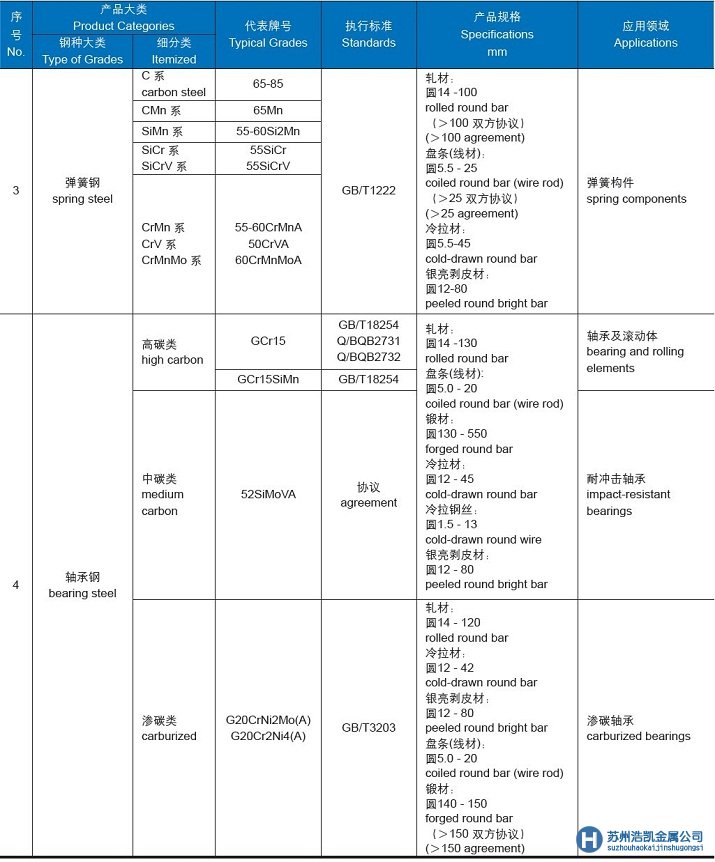 • 蘇州浩凱供應上鋼五廠彈簧鋼與軸承鋼規格表