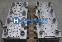 馬達鐵芯模具,英文對應名稱:MotorCoreDie , 鐵芯作為電機制造的核心部件,在整個馬達里面起到了舉足輕重的作用,因此,作為實現鐵芯批量生產的鐵芯模具,更是關鍵。以往的鐵芯都是使用單沖模具或者連續模具沖壓制成散片,然后又通過鉚釘或者焊接的工藝,制作成所需要的厚度--鐵芯的材質一般采用硅鋼材料,單片的厚度有0.5mm、0.35mm、0.2mm等,這種工藝效率不高,使用人員也較多,因此逐漸被自動疊鉚鐵芯模具所替代,在這里我就著重介紹一下自動疊鉚鐵芯模具的情況。 自動疊鉚鐵芯模具采用多工位級進方式,模具上安裝有氣缸、鉚接沖頭、穿片沖頭、壓入沖頭、整形環等部件,通過沖壓機控制面板設定所需疊鉚片數,給電磁閥